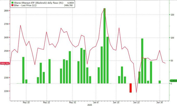 Adding fuel to the fire, President Trump’s World Liberty Financial platform purchased $5 million worth of Ethereum less than 48 hours ago, a move that has amplified the rally. Meanwhile, BlackRock’s Ethereum ETF has been steadily adding the cryptocurrency, with 29 out of the last 30 days showing inflows before July, despite earlier price dips due to heavy shorting.