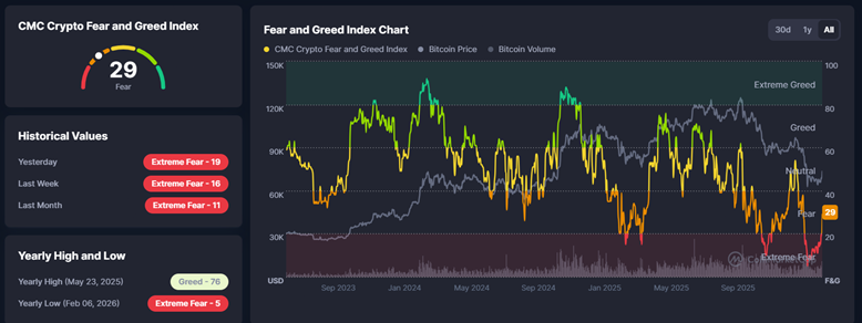 This comes as the CMC Crypto Fear and Greed Index also jumped from extreme fear levels to fear (from 19 to 29).
